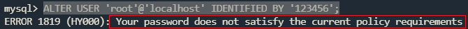 mysql> ALTER USER 'root'@'localhost' IDENTIFIED BY 'qazWsx>+&3ed';