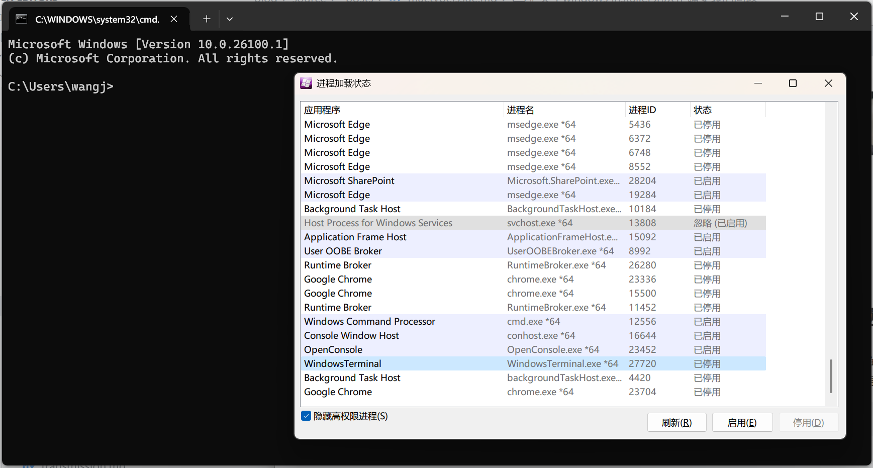 更改完成后右下角就会多出来 mactype 的图标,双击打开,然后排除掉 Windows terminal 这个进程就不会再闪退了。