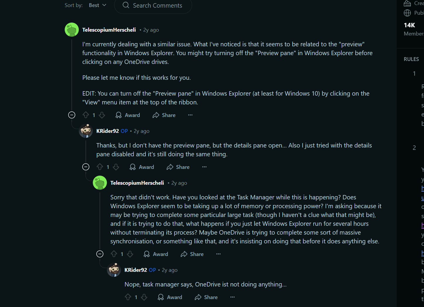我也去 reddit 上查找了相关问题,也有人遇到。不过他们似乎都是因为预览窗格导致的,我尝试了这个方法,没有用。