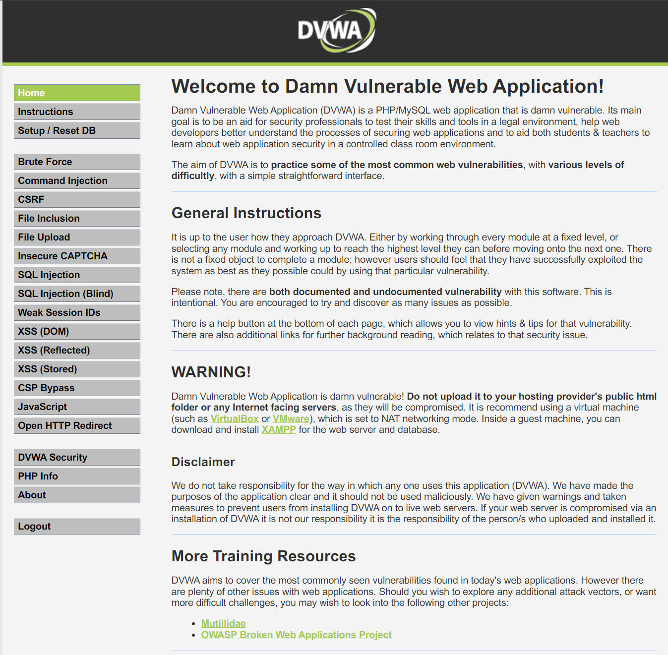 1 | docker run --rm -it -p 8083:80 vulnerables/web-dvwa |